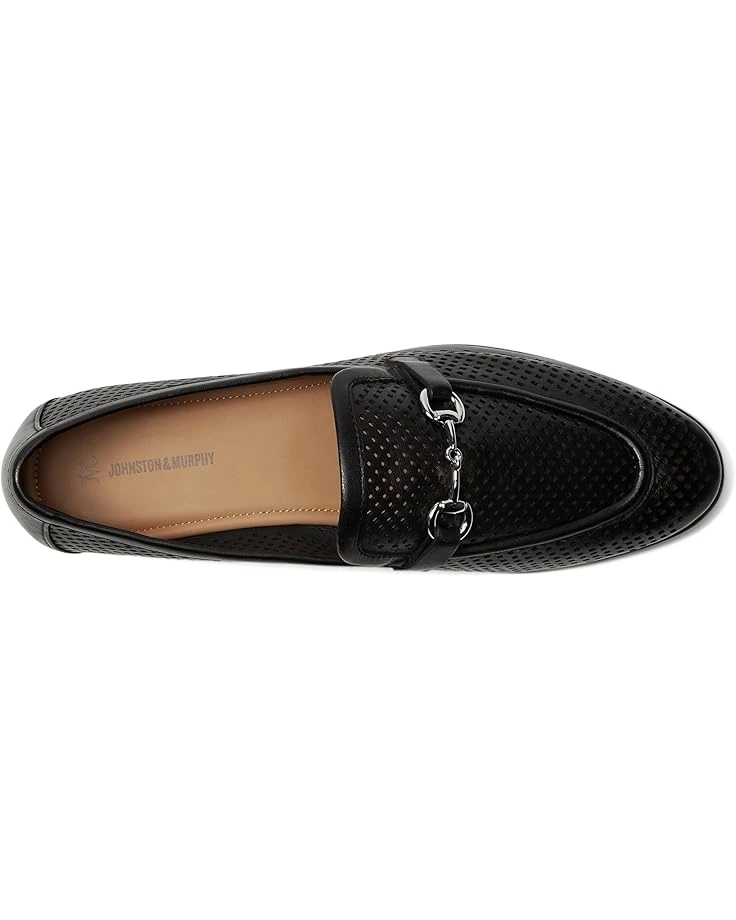 - Step into sophistication styling the Johnston & Murphy® Ali Perfed Bit Loafer. Crafted from supple leather upper, lining, and insole, it boasts a cushioned OrthoLite® footbed for all-day comfort. The pull-on style is adorned with a chic metal hardware chain design, while the synthetic outsole ensures durability and traction.